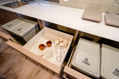 Also, because it's in the same space as the living room, you can cook while enjoying conversation with your share mates. It's a great way to share a meal with other people. It's a great way to share a meal together.