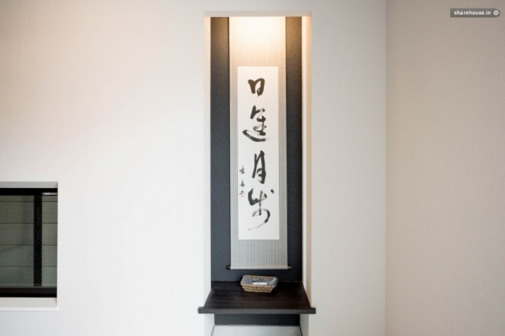 The walls are decorated with calligraphy by calligrapher Kashu Enohara, adding a gentle touch of color to the room. It's great to have such a stylish place to spend time with your housemates.