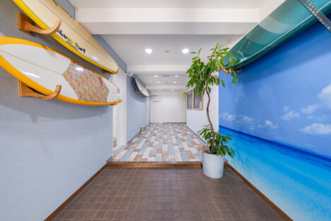 Even the entrance—with its surfboard decor—sets the tone for an active lifestyle.