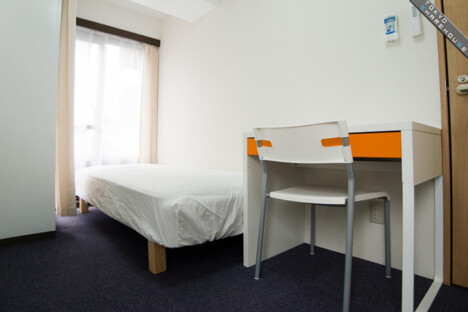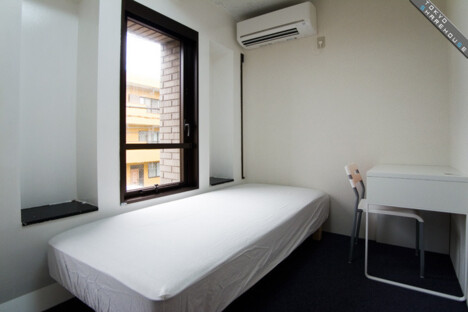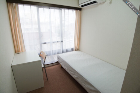 Here's a shot of room 201. It's on the same floor as the main lounge, including a bed, desk, and air conditioner.