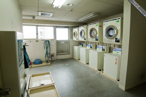 There's a laundry space on the 6th floor, but this one appears to require payment. (1 use of the laundry machine is 200 yen. 30 minutes in the dryer is 100 yen) Also, the door on the right side inside this space leads to an area on the roof to hang clothes to dry.