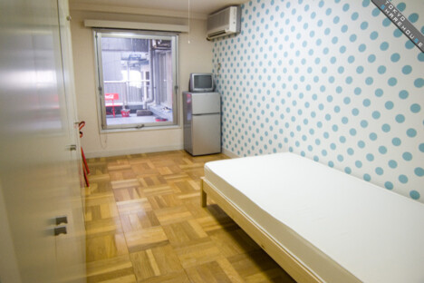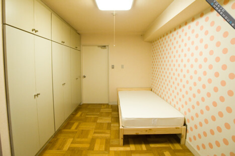 This is one of the rooms (room 305), with a cute polka dot design accenting one of the walls. Also, the room is 7 tatami (11.5m²) in size, so you could probably say it's a relatively spacious private room compared to most share houses in the city.