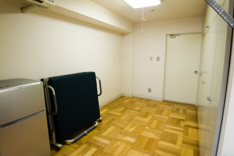 This is room 405, furnished with a folding bed. When you're not sleeping, it's a great to make effective use of your space.