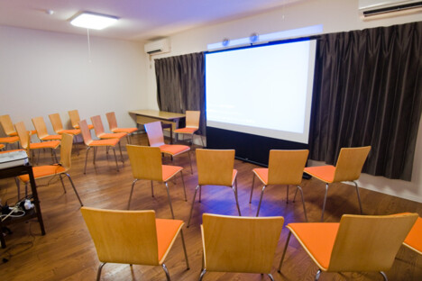 The bottom right picture is the conference room equipped with a large screen and projector. It's definitely on par with one's you'd usually pay to use. When there are no seminars going on, it's free to use as a work space for residents and non-residents alike. And of course, the room is complete with wireless internet and outlets.