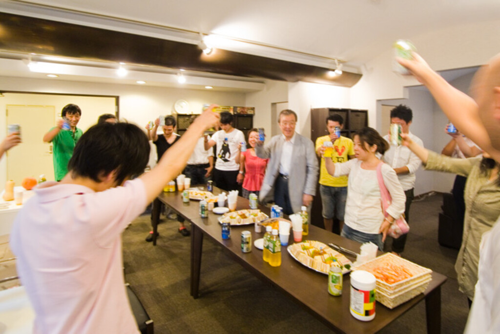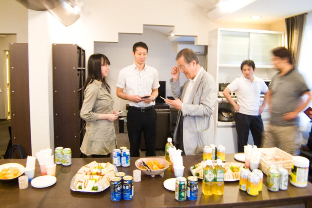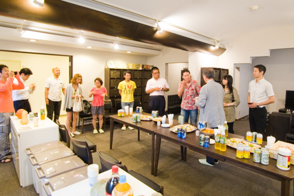 When they wrapped up the question and answer session, we all moved to the lounge to enjoy a small social party. In an instant, people immediately gathered around Mr. Deguchi where they'd all exchange greetings and business cards.