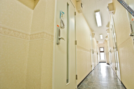Here's a shot of the second floor hallway. All the rooms are private rooms, and the numberpad locks on the doors ensure privacy.