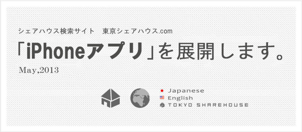 We are pleased to announce to you today that Tokyo Sharehouse's very own iPhone application is now available in Japanese and English.