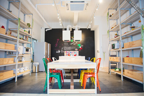 The blackboard painted onto one wall in the dining area can act as a platform to share recipes as well as a message board for the tenants.