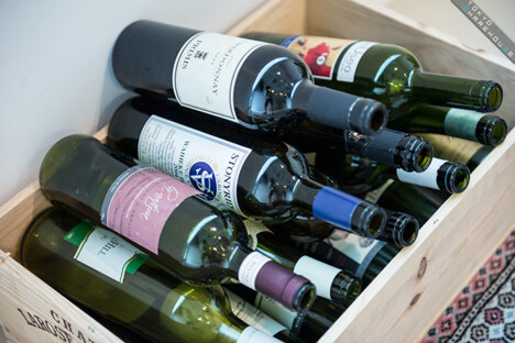 Tableware is stored in these wine crates.