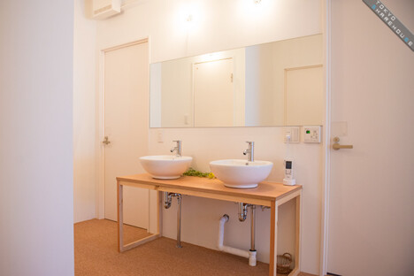 The 2F. Washstands are fitted outside the rooms.
