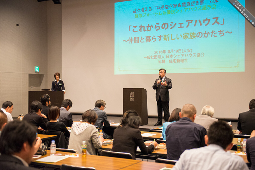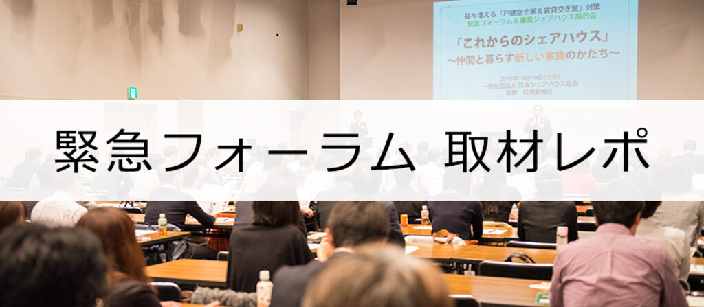 An urgent forum entitled "The future of sharehouses ~Proposal to use vacant houses~" was held on Saturday the 19th of October, 2013 sponsored by the Japan Sharehouse Association with support from Jutaku Shinpo.