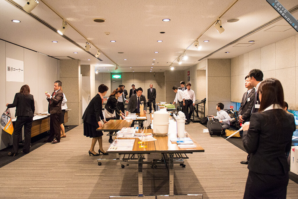 Before the beginning of the event. Association officials work together to finish the preparations. Another event, a quality sharehouse exhibition entitled "A new type of family with friends living together" was being held at the same time in another place.