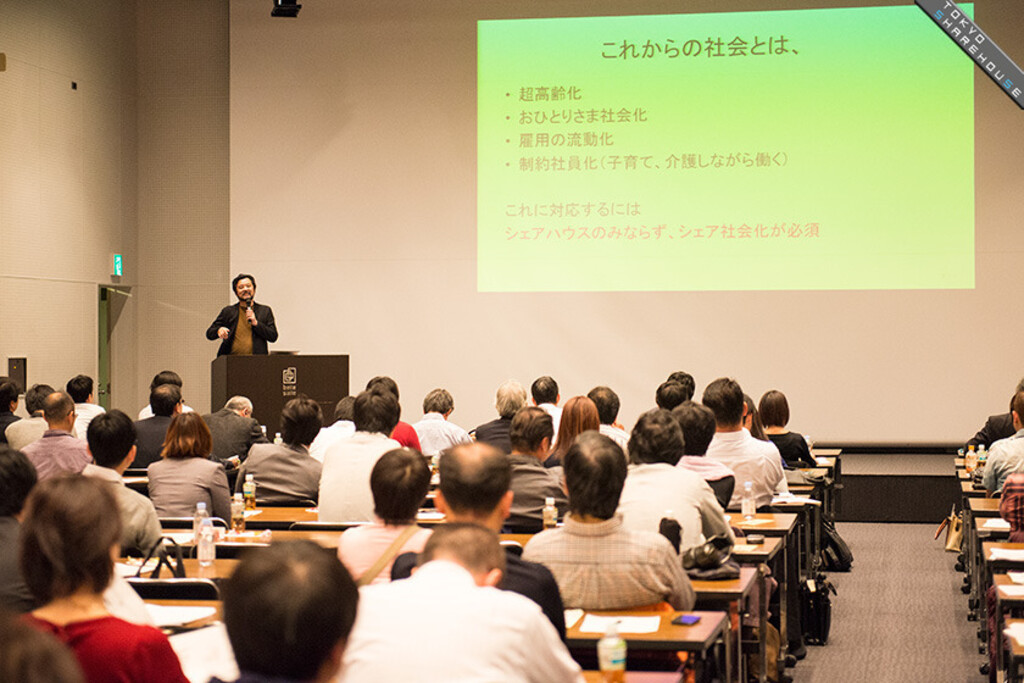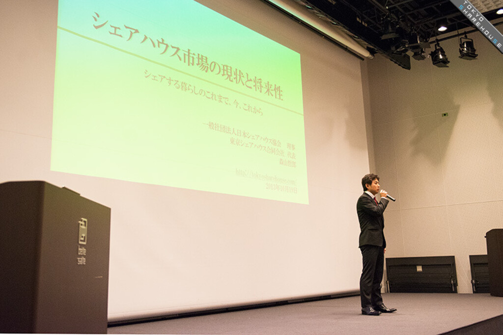 After Mr. Miura's lecture our own Mr. Moriyama started his presentation, themed "The current state of the sharehouse market and its future prospects", talking about the state of affairs at Tokyo Sharehouse and its influence, as well as the future of the sharehouse industry.