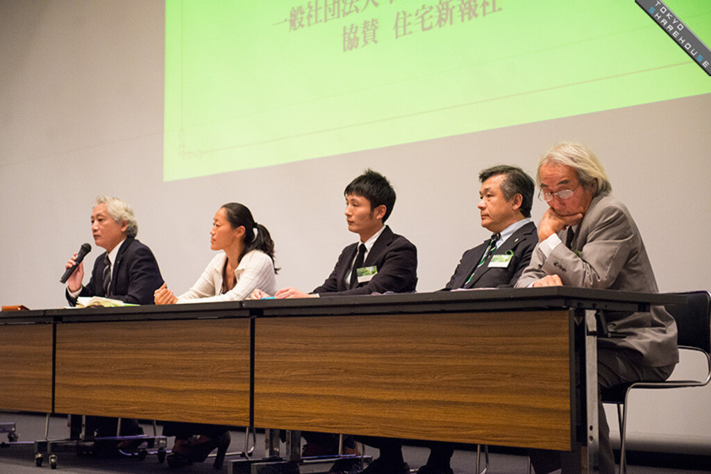 The event ended with a 5-man panel discussion on the topic "The Vacant House Problem" as well as "What's Next for Sharehouses", including media representative Nobuhiro Honda (editor-in-chief of Jutaku Shinpo), Yuki Shimizu who works in sharehouse management (head of Team Sukima Japan) and Yasuko Nagase (representative director of Come On UP) with Tokyo Sharehouse's Mr. Moriyama as moderator.