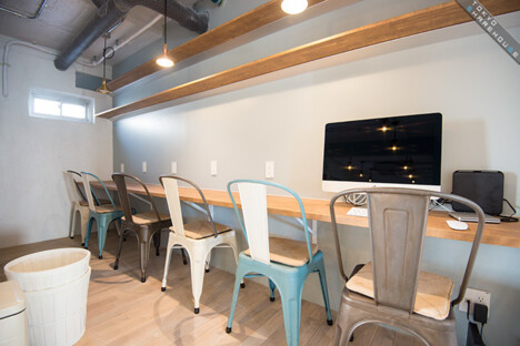 In one corner of the lounge hangs a large map of the surrounding area for tenants to share favorite spots and detailed restaurant information with each other.