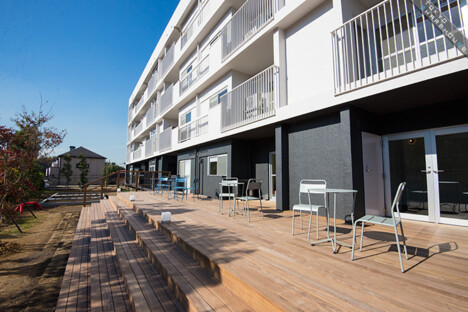 The sharehouse itself is made up of two buildings facing each other with a large open plaza bringing the two together in the center.