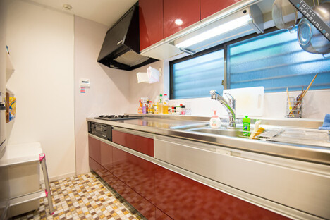 Like all houses in the Cocoro series, the kitchen floor is fitted with mosaic tiling.