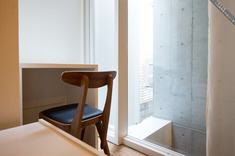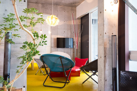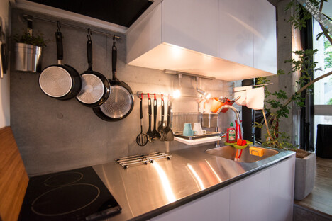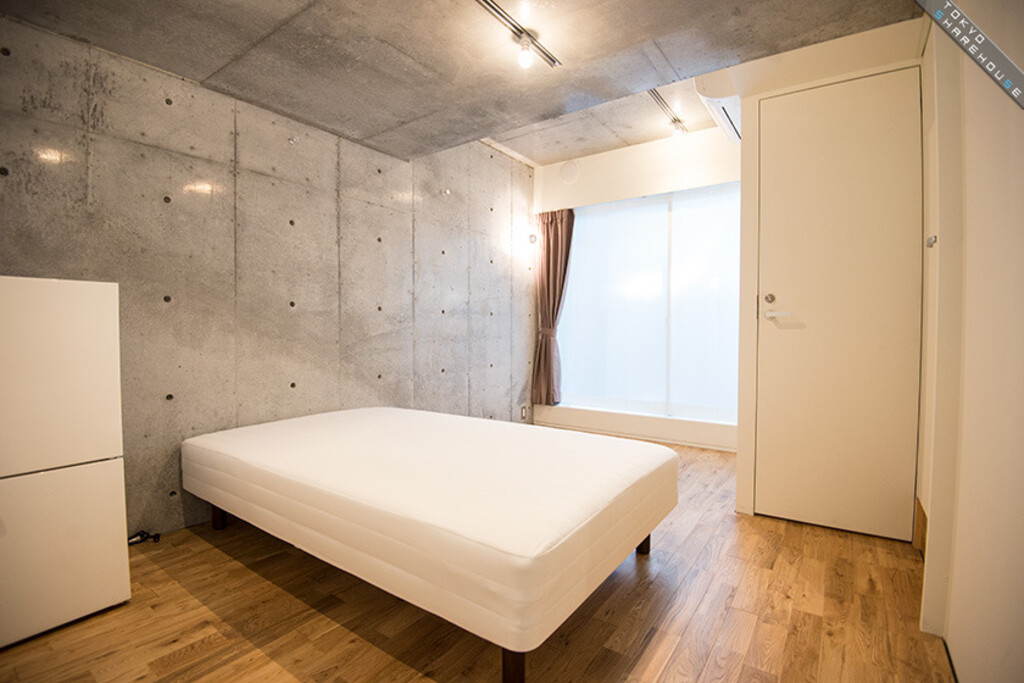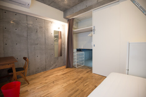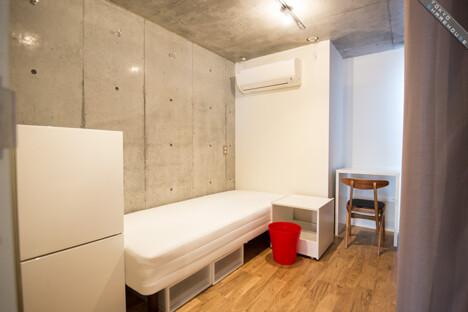 There are 5 rooms in total with stylish interiors of floorboards and undressed concrete walls. Each room is equipped with a bed, refrigerator, desk and chair, and one room even comes with its own bathroom and toilet, perfect for couples wanting to move in together (Room 1).
