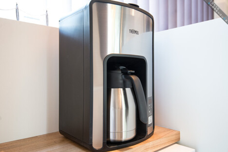 Wake yourself up with a strong cup of coffee in the morning from the THERMOS coffee machine.