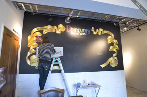 A hand-drawn welcome board is displayed extravagantly in the front entrance overseeing the coming and going of the house inhabitants.