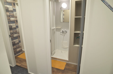 There are 5 showers in total and the shelving inside makes for ease of use.