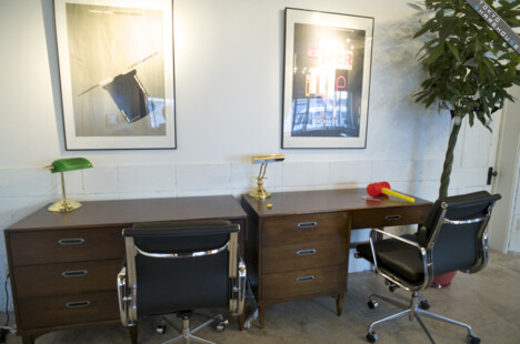 2 sturdy desks. Take a seat here when you seriously want to get some work done.