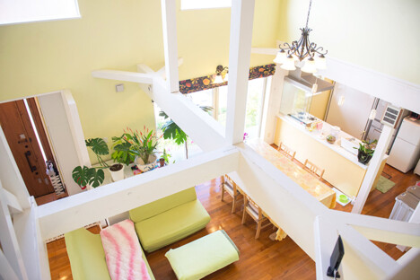 Many houses here are reinforced concrete constructions built to withstand Okinawa's typhoon season, however this is house is made of wood. The high ceiling creates a spacious environment.