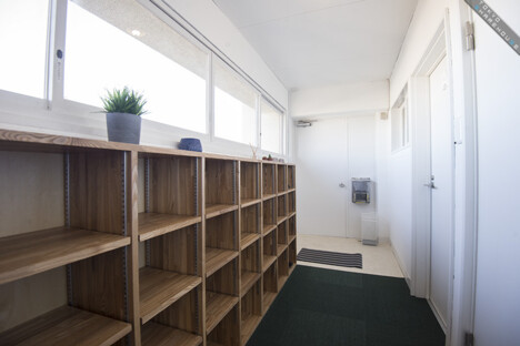 That said, on the other side of the door a brand new interior awaits. Residents can each use one shelf of this shoe storage box.