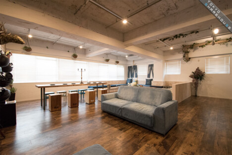 The location has great public transport access and Shibuya can be reached in 20 minutes without changing trains on the Denentoshi line. The building itself was formerly a newspaper company on the 1F with a company dormitory above. It has now been renovated into 65-room large scale sharehouse, and the look of the intentionally rough interior is very different from its exterior. At first glance it seems like the kind of house that would appeal to men, but upon closer inspection one finds its European touches and floral arrangements to create a unique elegance.