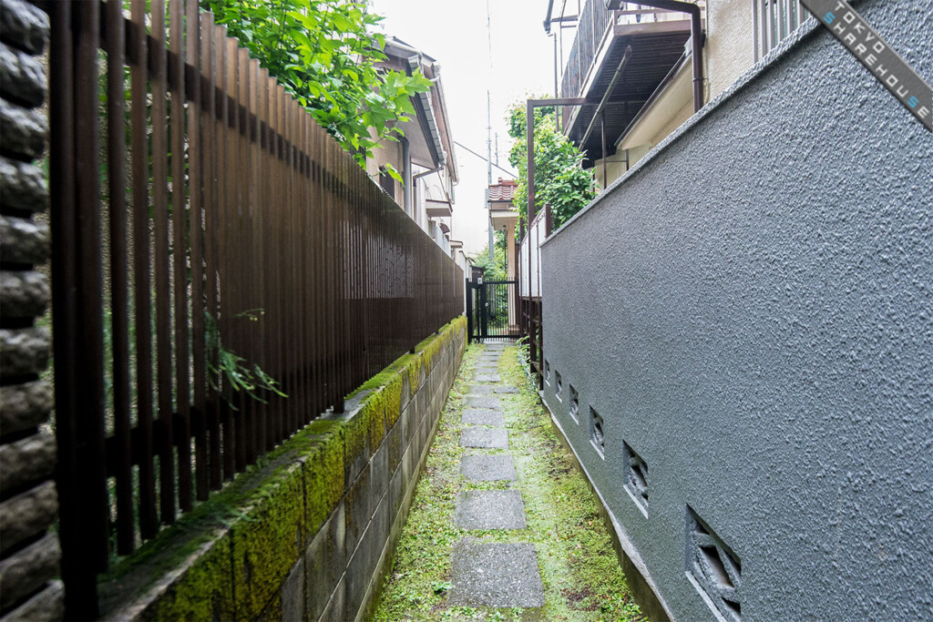 The Japanese taste differs from that of the west in that it admires simplicity over dazzling gorgeousness. One of the fundamental elements in Japanese gardens is its stepping stones, something which is seen less and less in modern home gardens. This entrance of this property has been quietly set up in an unexpected place in between two houses.