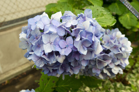 The beauty of the blooming hydrangeas are intensified by the rain, epitomizing Japanese aesthetic sense.