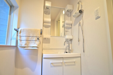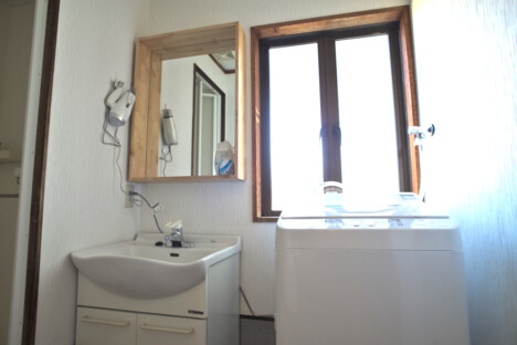 The washstands are also new. There is one on the 1F and one on the 2F, and both are nice and clean. The hair dryer and faucet both have lovely designs.