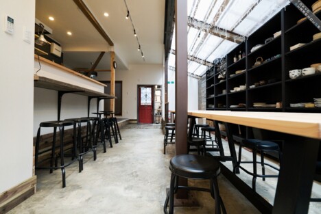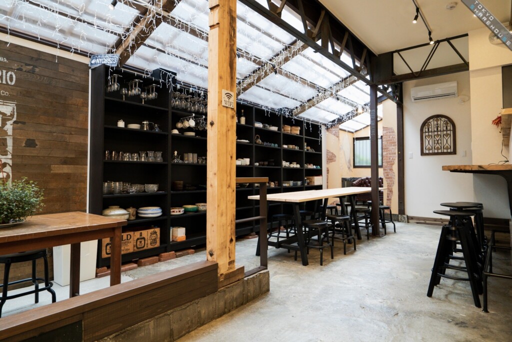 ・天井の鉄骨や、床を剥がした際に現れたコンクリートの打ちっ放しなど、あえて活かして見せる造りになっている。