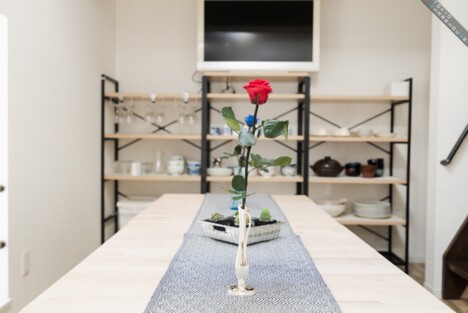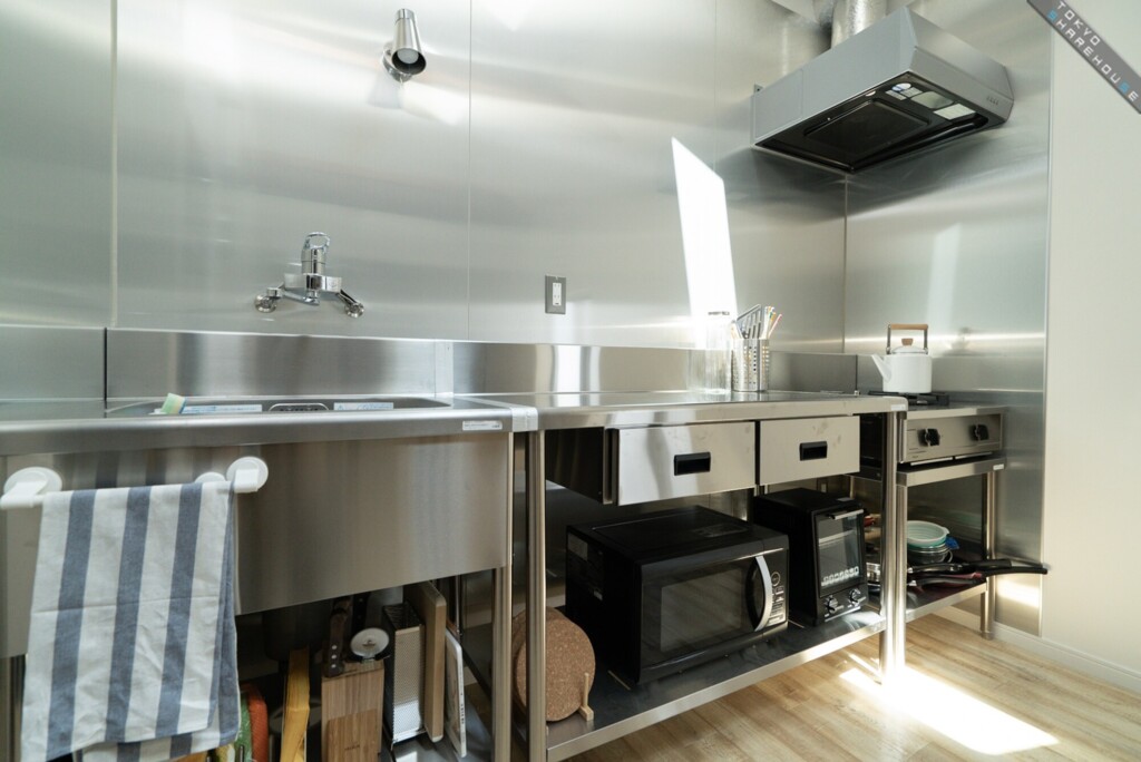 ・オープン当初、レンタルスペースとしての提供も想定されていたこともあり、「業務用のしっかりした造りもの」を入れたいと内装リクエストされた。(現在は、入居者専用のリビングです。)料理自慢の方はもちろん、お料理初心者もその気にさせてくれる雰囲気。