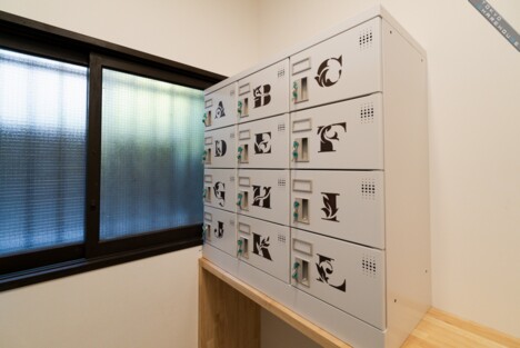 ・デザイナーにオーダーしたステンシルを所々に散りばめているそうです。(2階ダイニングテーブルやロッカー番号など)
