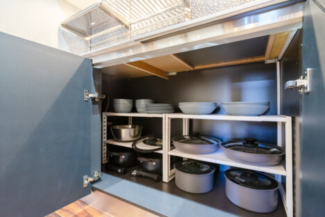 また、調味料や食材を入れておける自分用の収納ボックスが備え付けられているので、一回一回お部屋から持ってくる必要はありません。