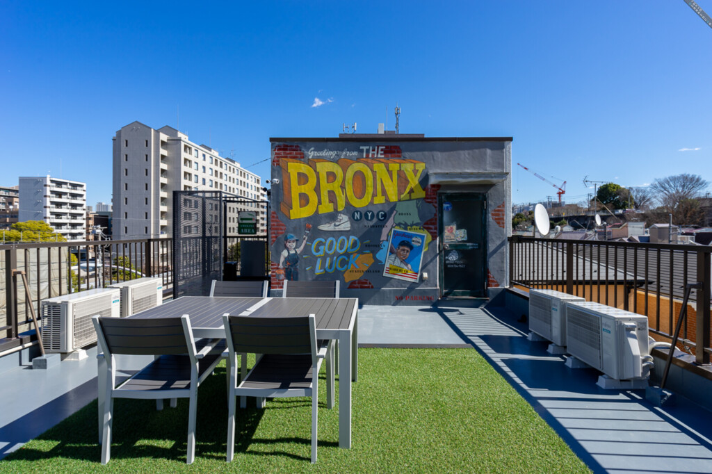 個性的なペイントが目を引くこちらの屋上。洗濯物を干したり、お昼ごはんを食べたり、ハウスメイトと語り合ったり…