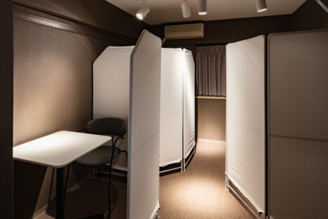 ウェブミーティングルームは3席。リモートワークが増えたことを鑑み、zoom会議などの際、背景に生活感が出ないよう、パーテーションで区切られています。
