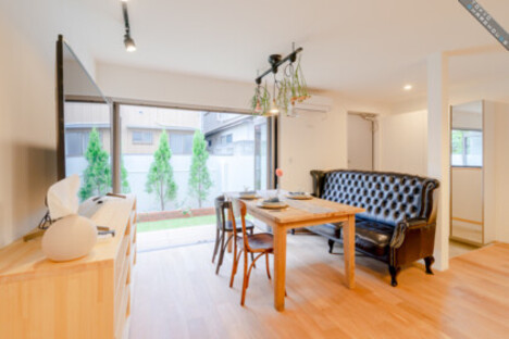 市川駅と連結している商業施設「シャポー」を抜けて、閑静な路地を進んでいくと見えてきたのは可愛らしい見た目の一軒家。こちらのシェアハウスは今年11月にオープンしたばかりの新築の物件。白を基調としたデザインに木の柔らかな質感がマッチして清潔で優しい印象を与えてくれます。