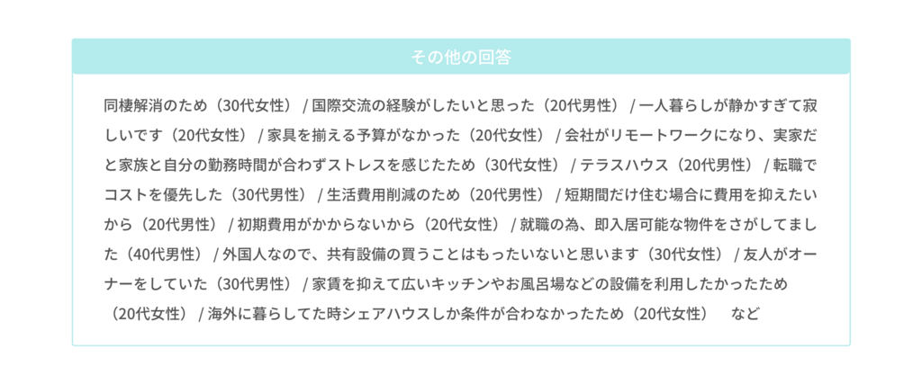 この度、東京都のシェアハウスに住む20代会社員の男女を対象に「シェアハウス生活の実態」に...