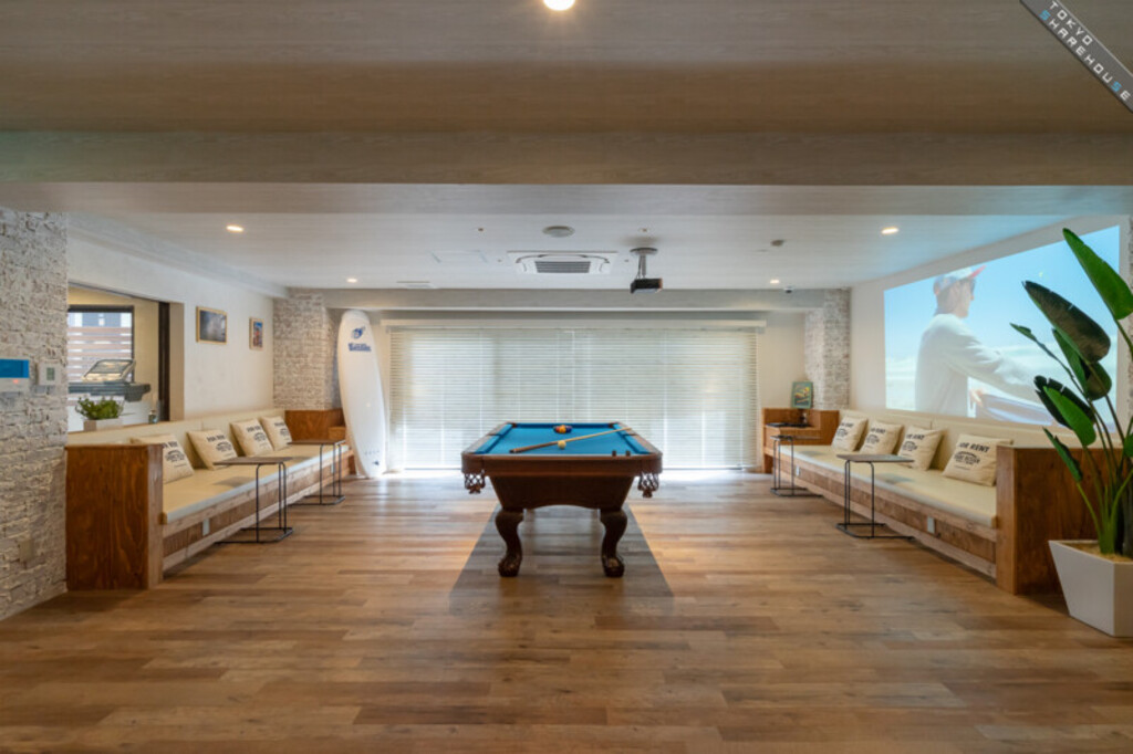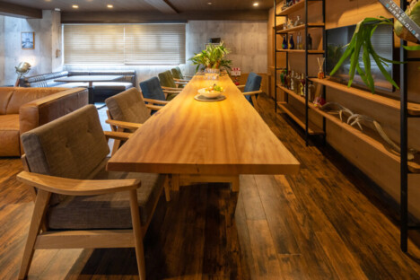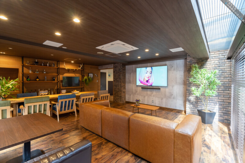 吹き抜ける川の風を感じる、隠れ家シェアハウス。玄関から直結の、広々とした木目調のリビン...