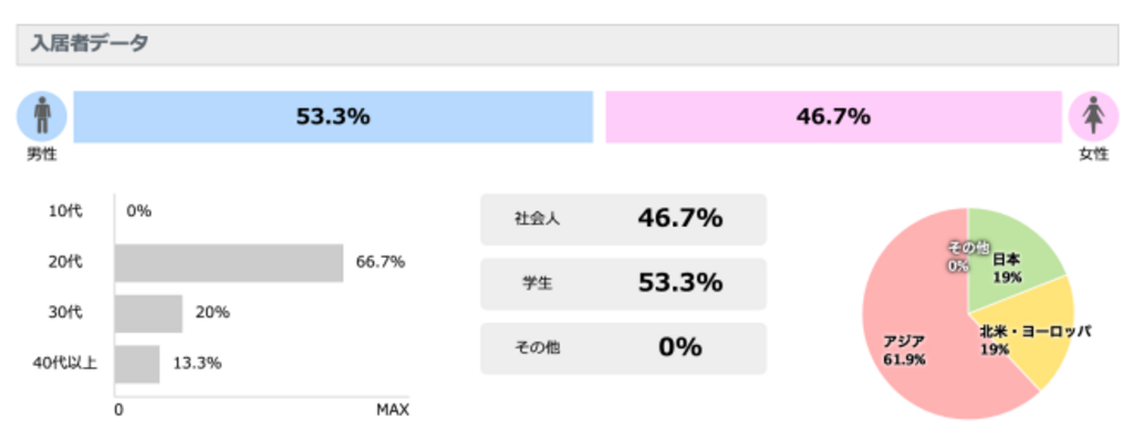 各シェアハウスの入居者の傾向なども分かると思うので、是非参考にしてください。