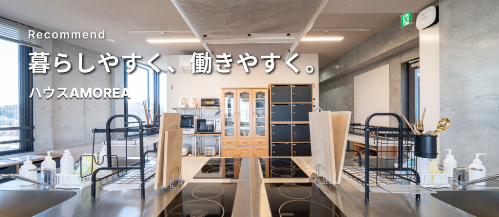今回ご紹介するシェアハウスは、「ハウスAMOREA」です。なかなか聞き馴染みがない「AMOREA」というこの単語は、「A MORE REAL」を組み合わせられた造語であり、「もっと・より、リアルな成功を勝ち取ってほしい」という想いが込められています。