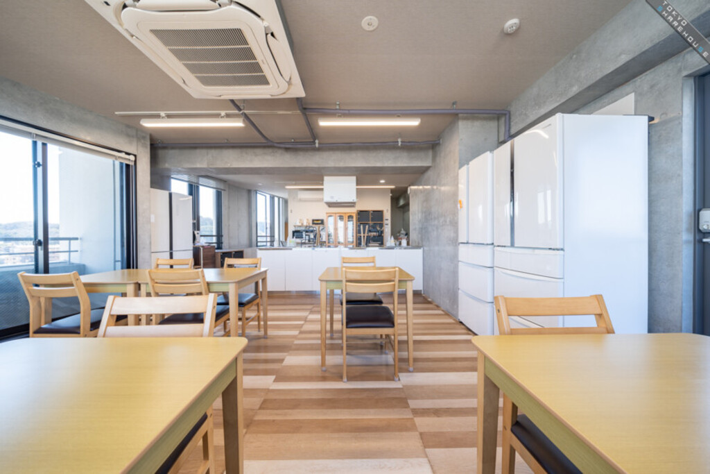 男女共有で12世帯のシェアハウスとなっているため、共有スペースの広さも申し分ないですね。しかし、リビングとはいえソファなどはないため、基本的に食事をとるためだけの場所として使われそうな気もします。